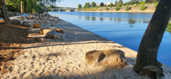 Liaisons douces en bord de Seine, plage urbaine, belvédères, promenades pédagogiques, signalétique, intervention artistique, mise en place de fraiyéres, traitement des berges, plantations, éradication des plantes invasives
